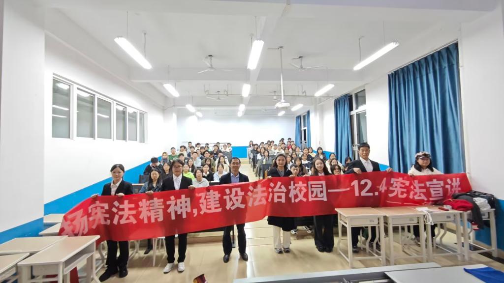 宣讲活动通过视频展播、案例讲解、情景演绎等多元形式,生动阐释了宪法的发展历程与核心内容。同时,现场设置了互动问答环节,同学们踊跃参与,在交流中深化了对宪法规定的权利与义务的理解。最后,杨开华在总结发言中强调“学法先学宪法”的理念,鼓励同学们增强法律意识,将法治精神融入日常学习与生活,并充分肯定了宣讲团的工作表现。