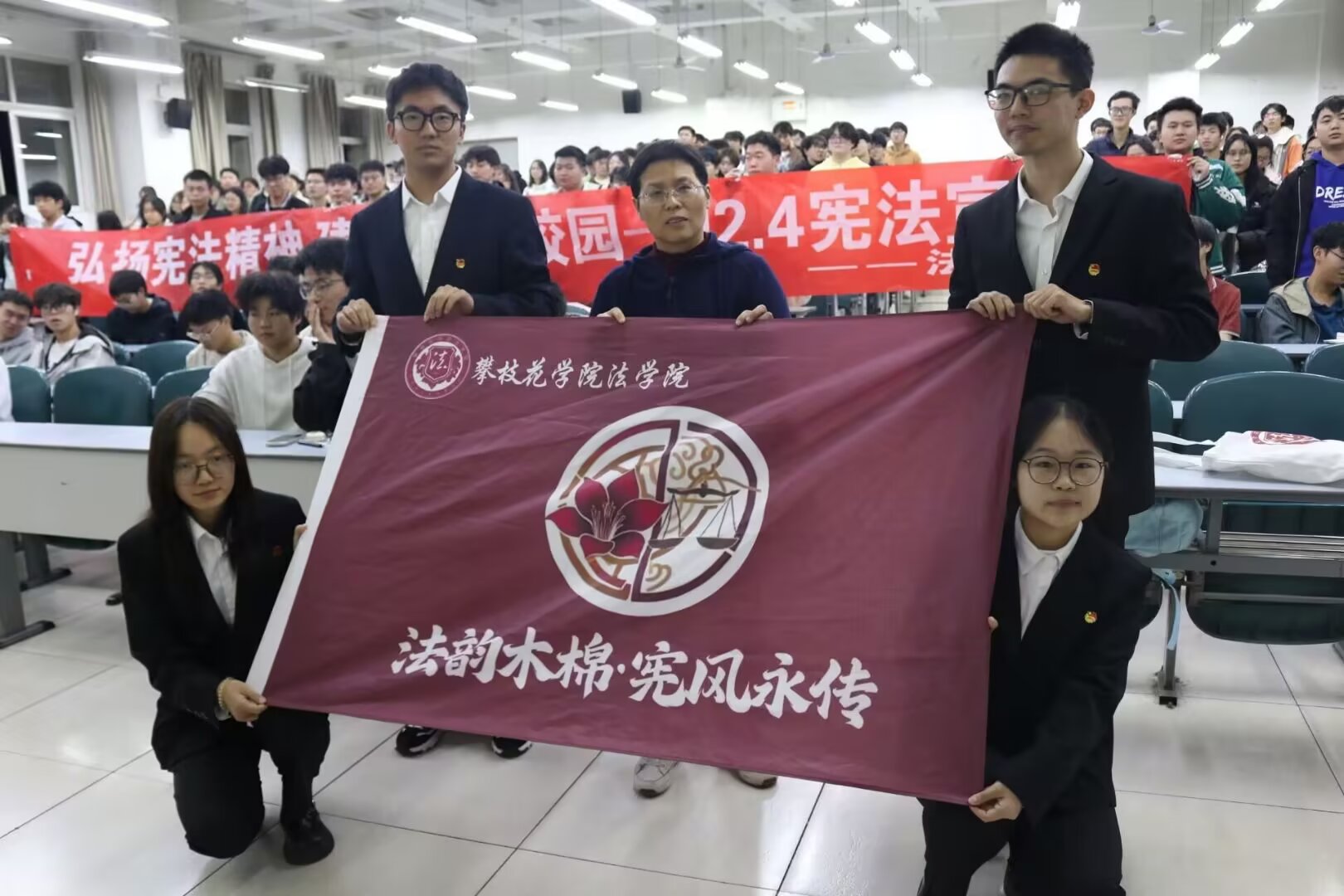 为深入学习宪法法治思想,推动宪法精神在校园落地生根,法学院宪法宣传团于11月25日20:00在2-316教室开展“弘扬宪法精神,建设法治校园”主题宣传活动。本次讲座由法学院教师翟娅丽指导,宪法宣传队成员苏扬、何小郎、降巴益西、杨宇婷主讲,钒钛学院2025级全体学生参与。