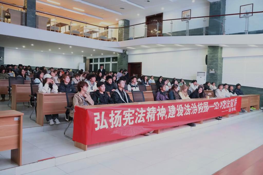 为弘扬宪法精神、培育法治素养,法学院宪法宣讲团于11月25日20:20在博雅厅开展“弘扬宪法精神,建设法治校园”主题宪法宣讲活动。本次活动由法学院学生科科长兼分团委书记刘沙指导,宣讲团成员杨馨茹、郝婧怡、王钲文、程媛主讲,2025级艺术学院全体学子参与。