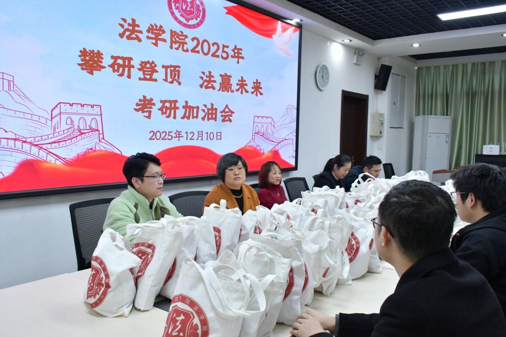 为助力考研学子舒缓备考压力、坚定冲刺决心,12月10日17:00,法学院于凌云楼3-1教室举办2025年“攀研登顶,法赢未来”考研加油会。法学院党委书记张琳、法学院学生科科长兼分团委书记刘沙、2022级辅导员吴军华、2022级法学3班班主任赵艳及2022级行政管理班班主任刘书生应邀出席本次活动。