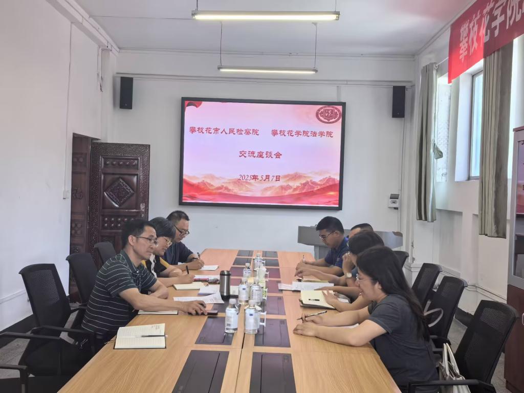 5月7日下午,攀枝花学院法学院与攀枝花市人民检察院检校合作交流座谈会在攀枝花学院凌云楼3-2会议室举行。攀枝花市人民检察院党组成员、政治部主任任红柳及相关业务部门负责人,法学院领导班子成员,办公室及邱士辉博士共同参加座谈。