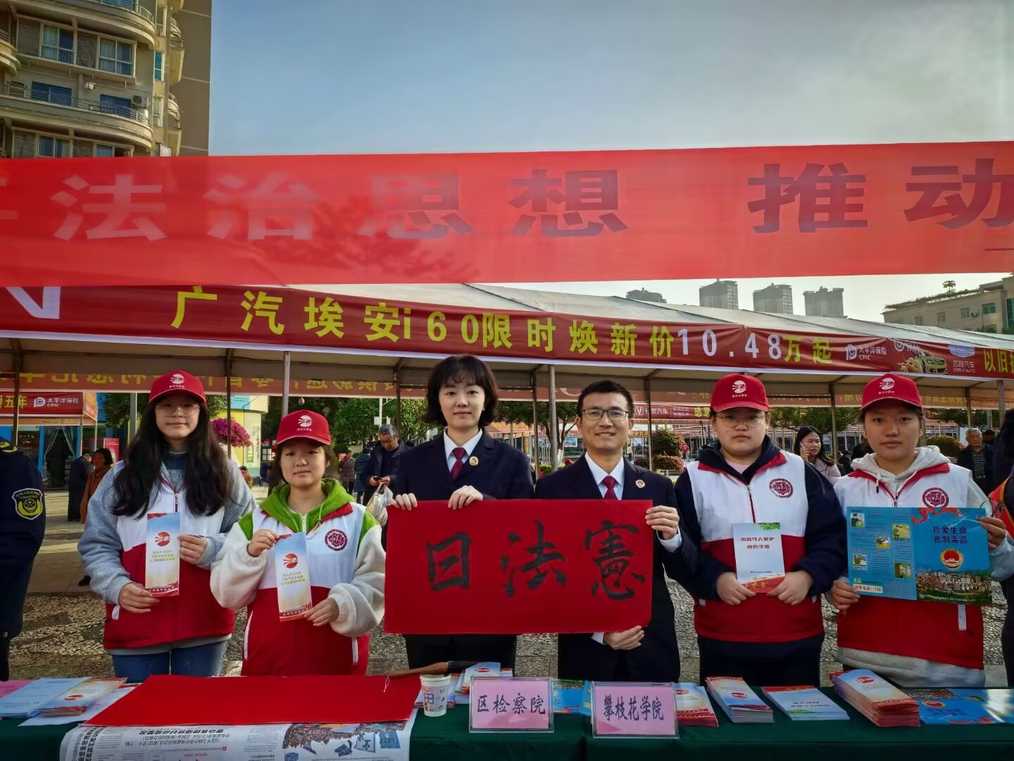 检校联动把宪法送到市民家门口。 12月4日上午,仁和区人民检察院在仁和广场开展国家宪法日主题宣传,法学院学生志愿者积极参与。现场设立咨询台、发放宣传手册、开展趣味法律问答,检察人员以案释法,志愿者引导群众、分发资料,为市民送上“家门口”的法治大餐,实现课堂所学与社会所需的双向奔赴。